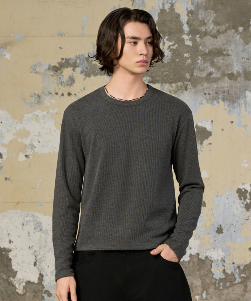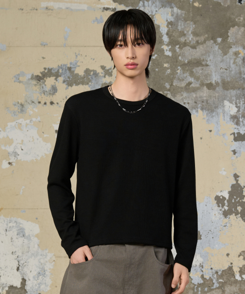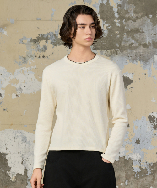 25 FW 리브드 골지 라운드 크롭 티셔츠 (4컬러)