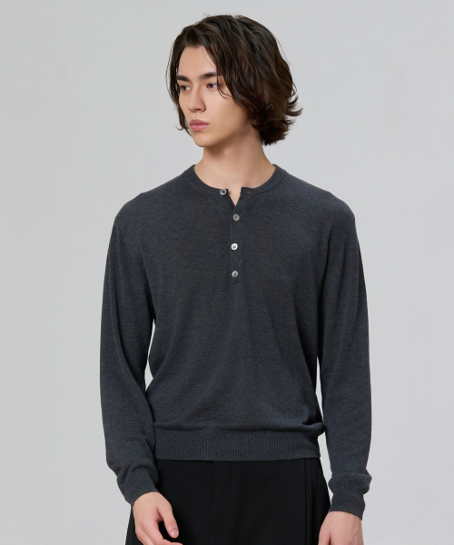 캐시미어 블렌드 헨리넥 크롭 니트 (5컬러)