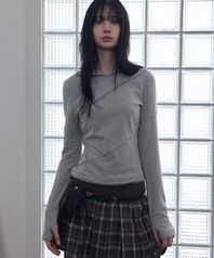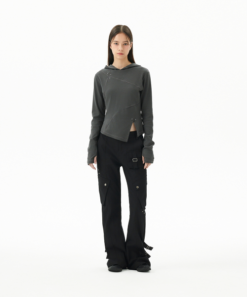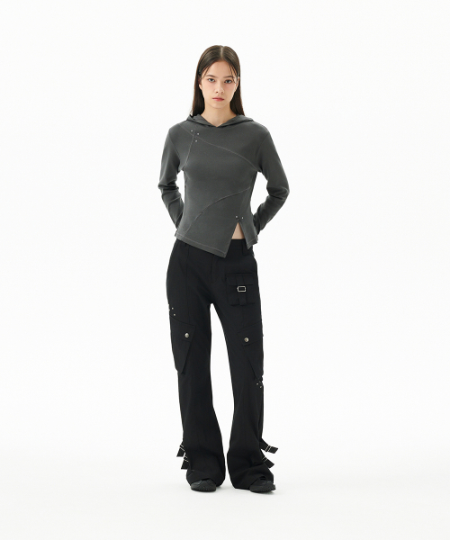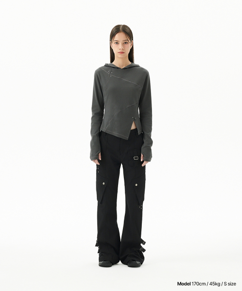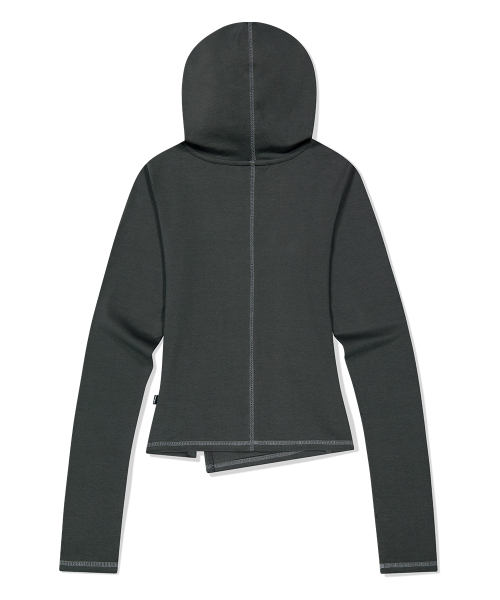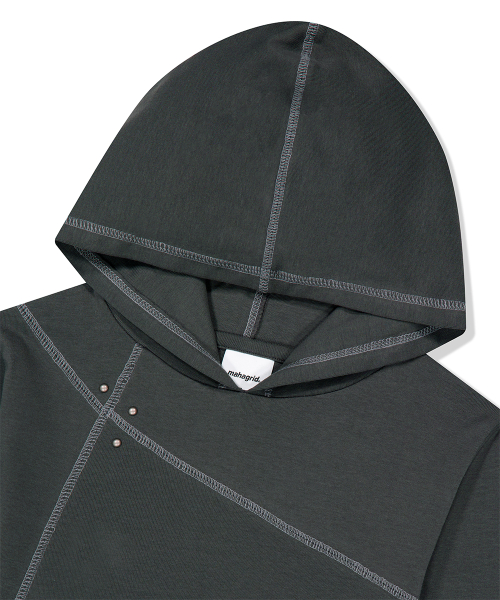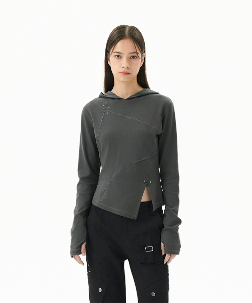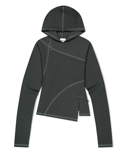 Diagonal Cut Slim Fit Hoodie Melange Gray