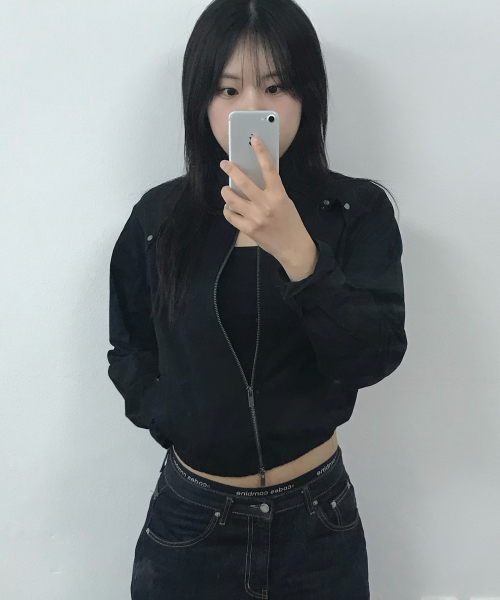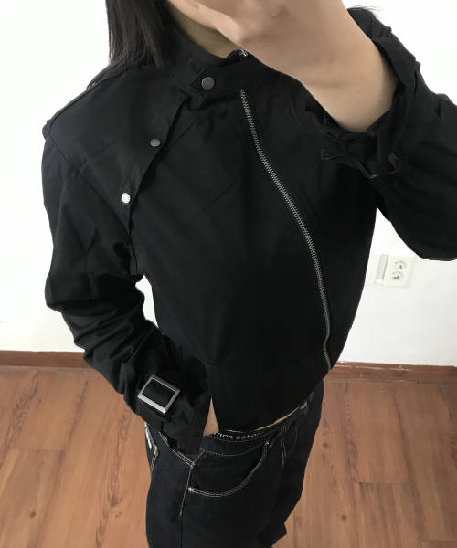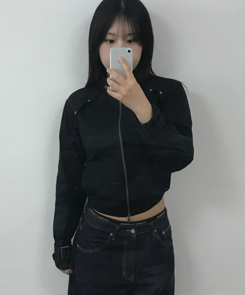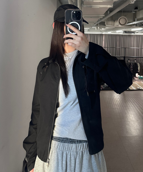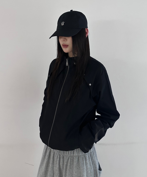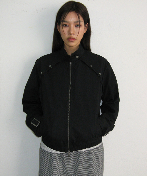 하이넥 스탠다드 스트랩 비조 포인트 블루종 집업 자켓 [블랙]