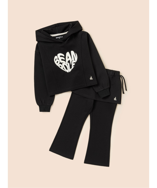 하트 그래픽 포인트와 트렌디한 치마 바지로 유니크한 멋을 더한 상하 세트입니다. 레귤러 핏으로 편안한 착용감을 선사하며, 레이온 혼방 소재로 부드러운 촉감을 자랑합니다. 하의 허리쪽 끈은 리본 모양으로 묶어주면 키치하게 연출할 수 있으며 어디에나 코디하기 쉬운 블랙 컬러로 구성하여 셋업뿐만 아니라 따로 활용하기에도 좋습니다. 빈폴키즈는 아이가 안심하고 입을 수 있는 옷을 만들기 위해 원단부터 완제품까지 철저한 '아동 유해성 안전 검사'를 진행하고 있습니다. 빈폴키즈의 제품은 1차 완제품 최종 검사, 2차 엑스레이 검사를 통해 구성 상품 누락 여부 검수를 진행하고 있습니다. * 세트 상품 교환 시 유의 사항 배송이 완료된 뒤 구성 상품 누락 및 불량 확인 후 착용 전 상태로 교환 요청 바랍니다.