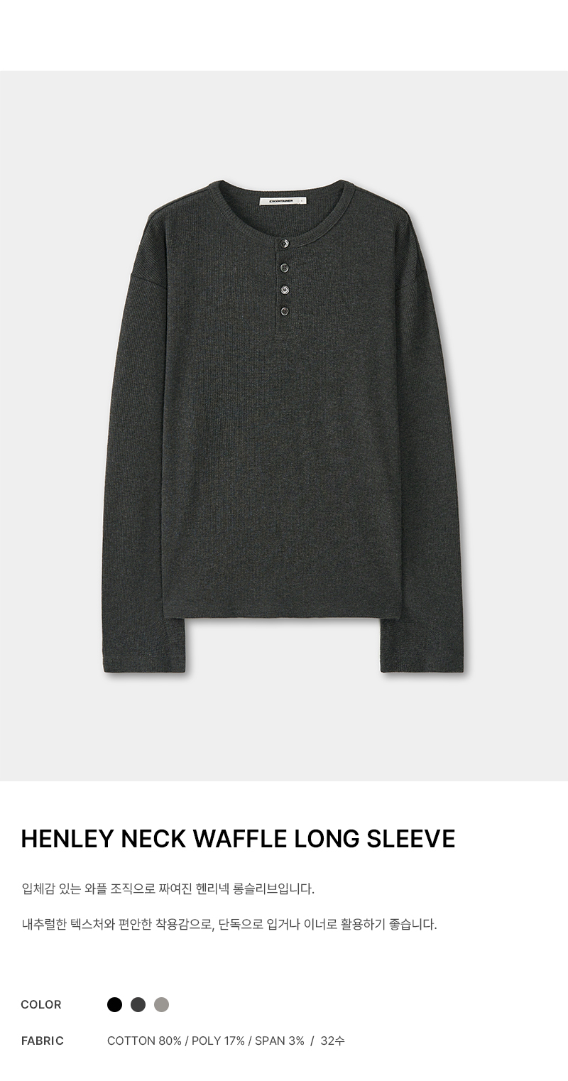 헨리넥 와플 롱 슬리브 (CHARCOAL)