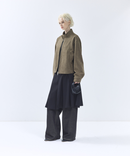 86-IRO332 레이싱 바이커 스웨이드 자켓 카키