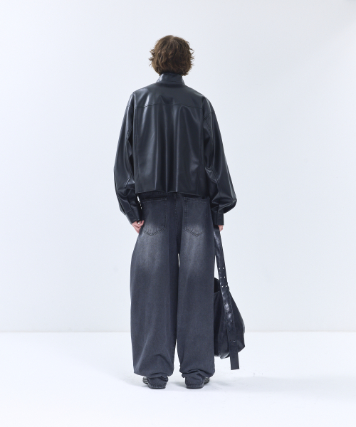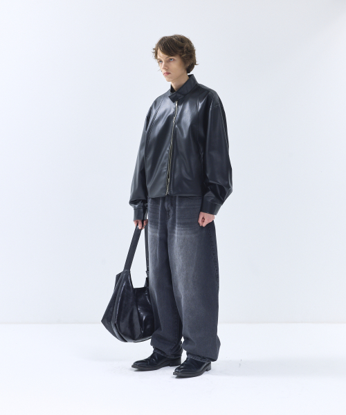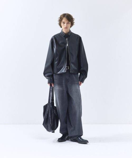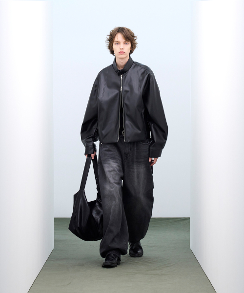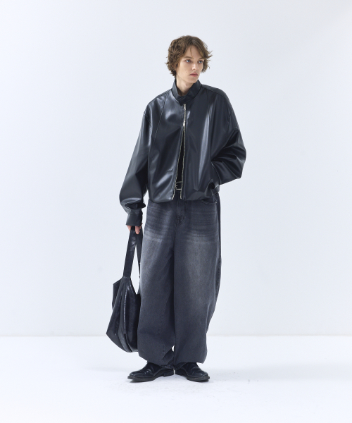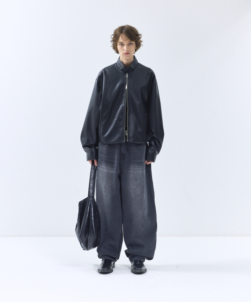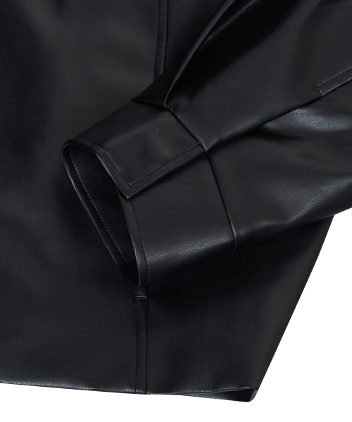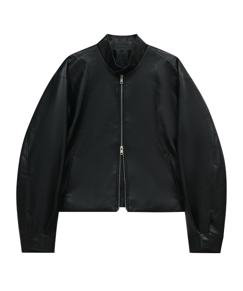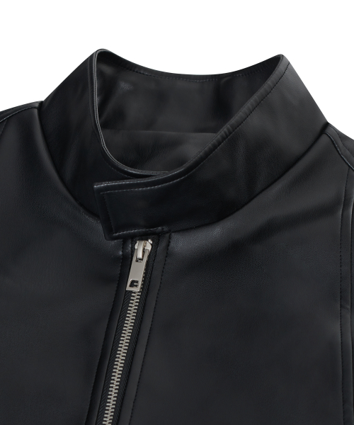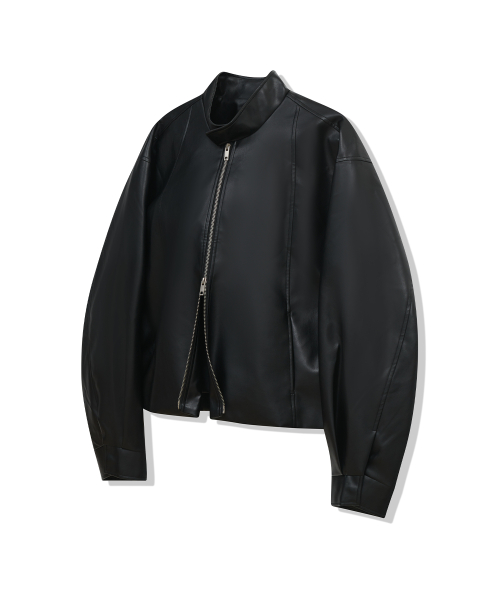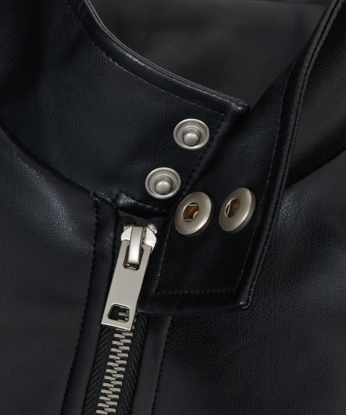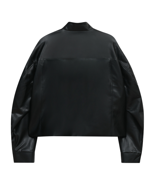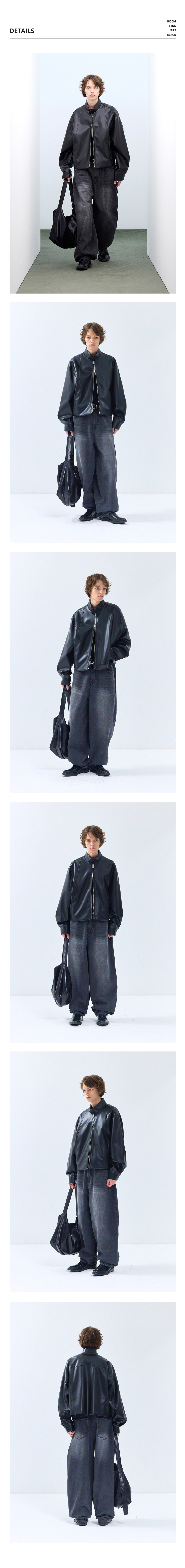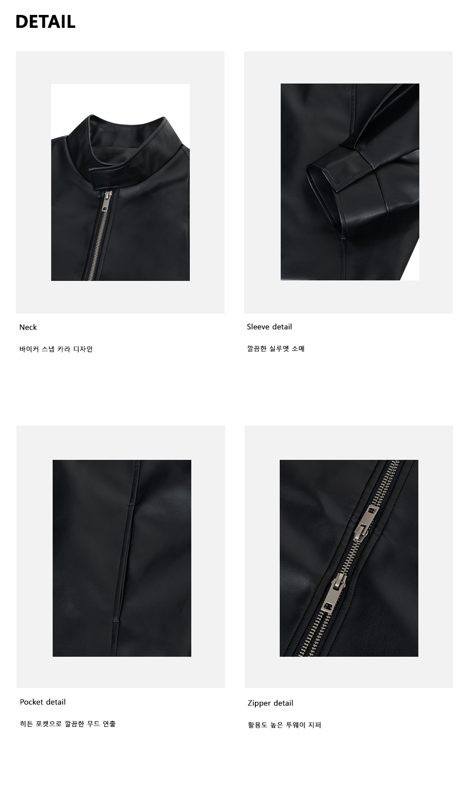 87-STAN008 [리뉴얼] 파이핑 카라 바시티 레더 자켓 블랙