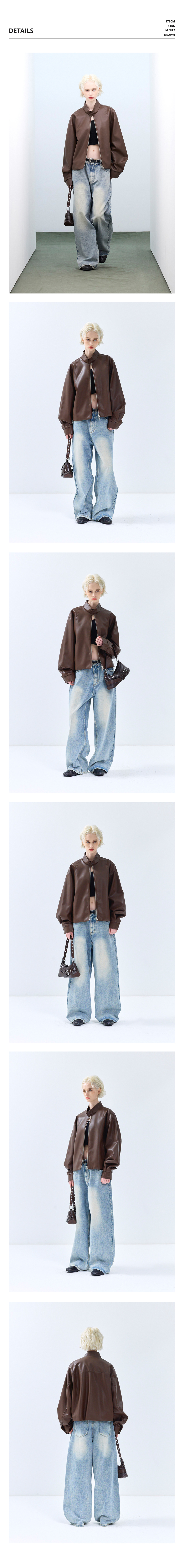 87-STAN008 [리뉴얼] 파이핑 카라 바시티 레더 자켓 아이보리