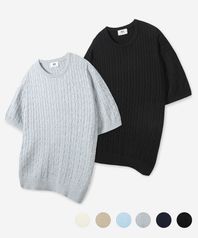 [2PACK]코튼 모달 워셔블 크루 넥 케이블 니트 - 6Color