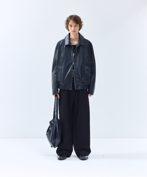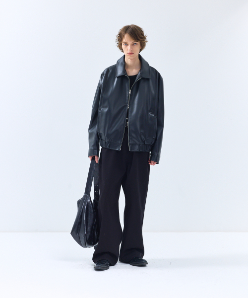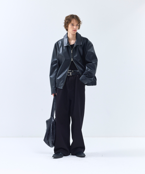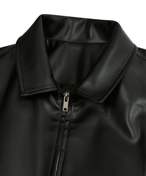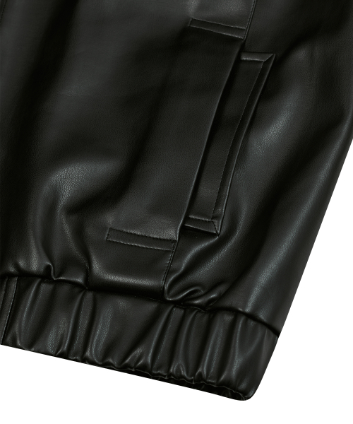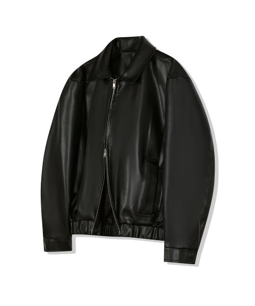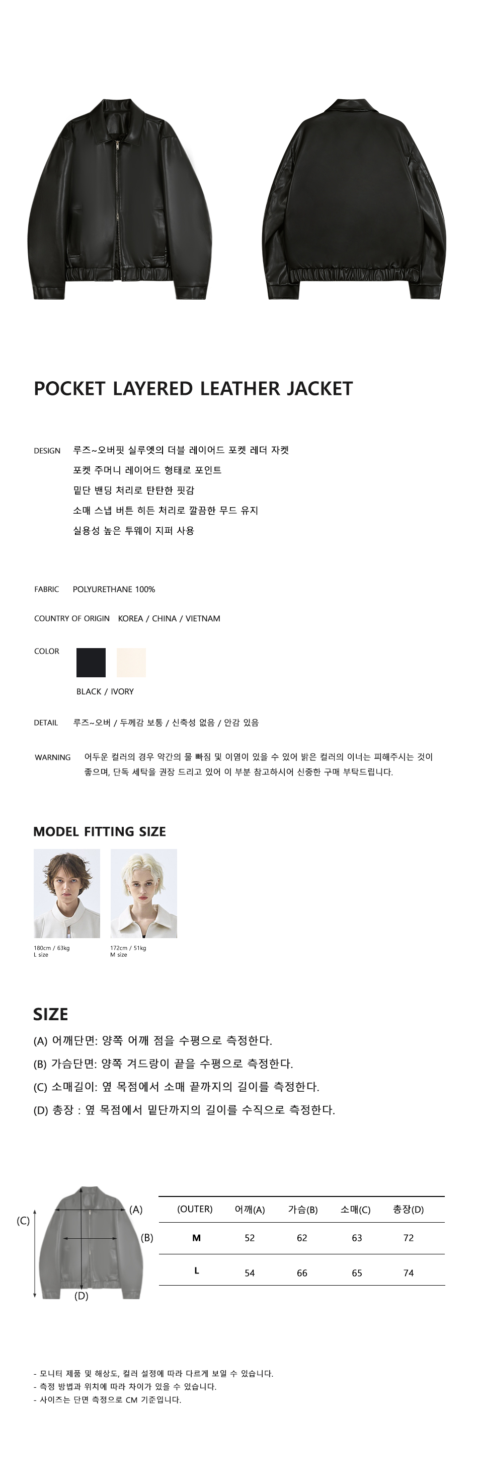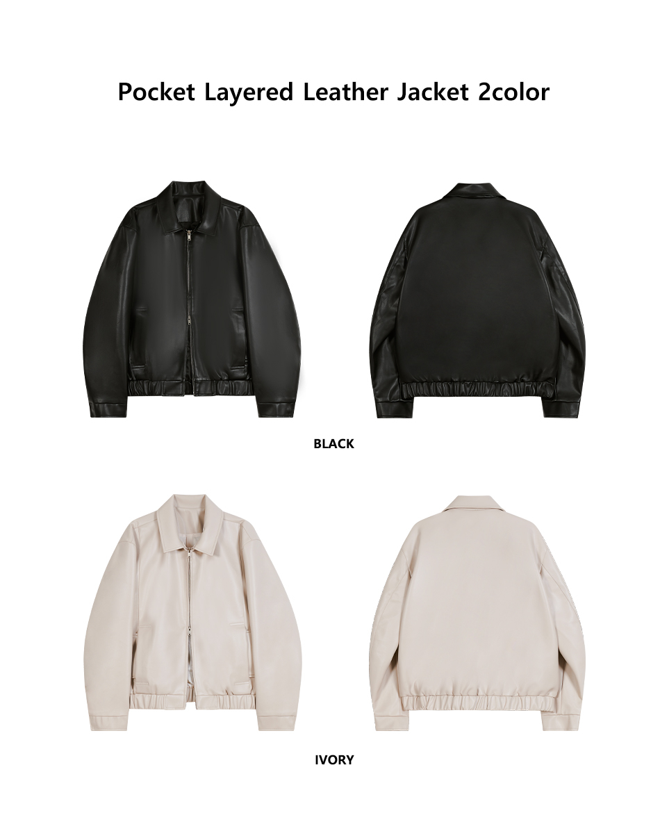 86-IRO347 포켓 레이어드 레더 자켓 블랙