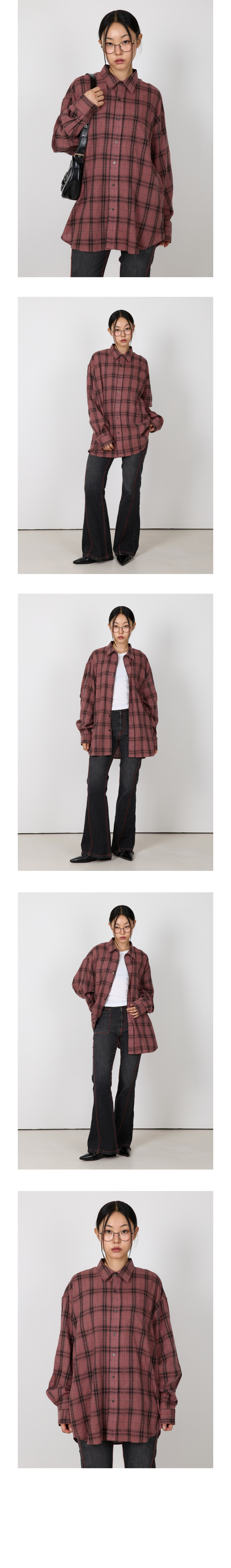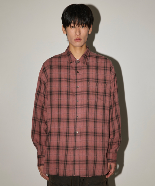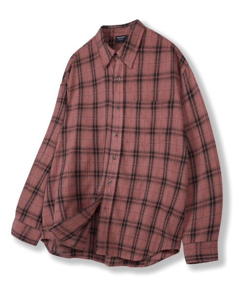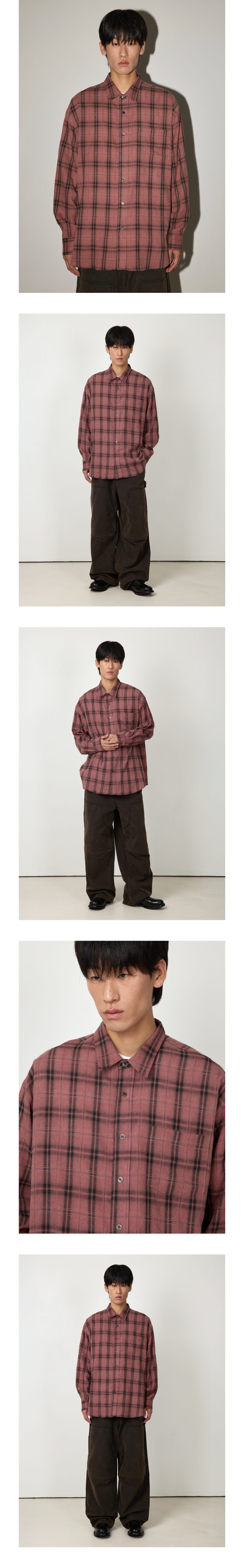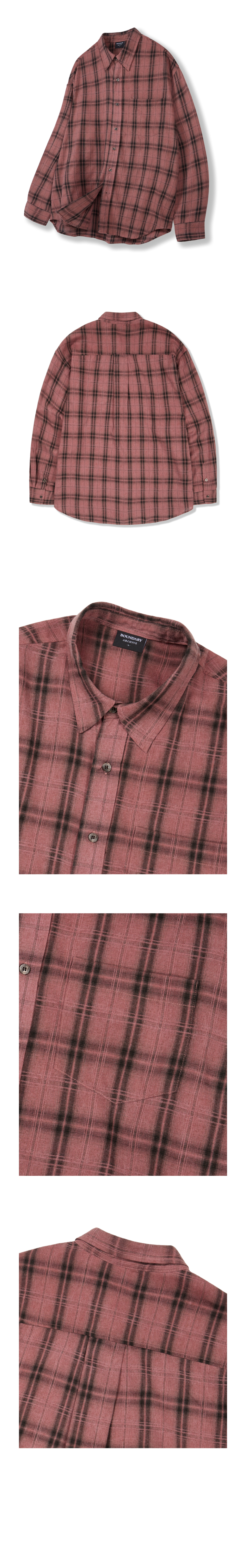 피그먼트 바이오워싱 오버핏 체크셔츠 [워시드 핑크]