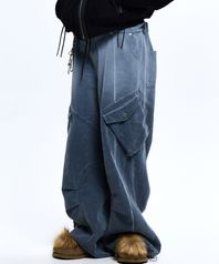 LAYERD WASHING CARGO DENIM PANTS - NAVY
