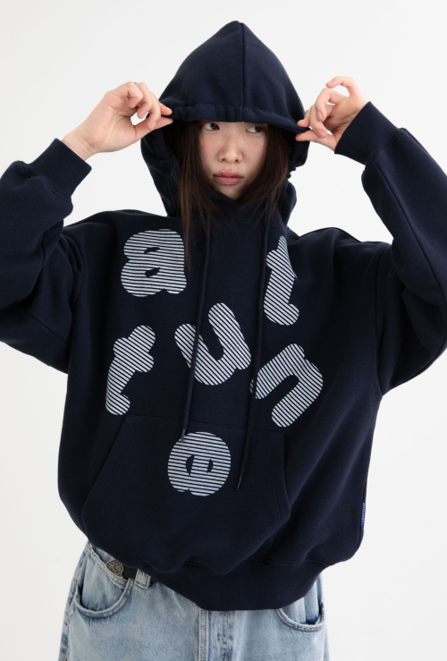 헬로 월드 패치워크 LOVE 후드티_네이비