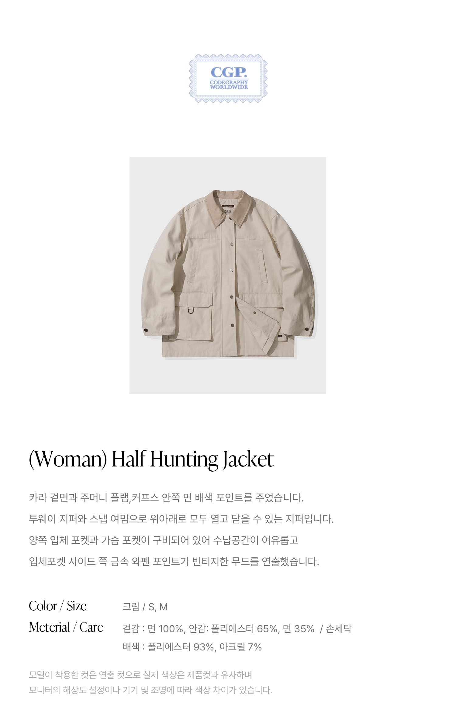 (우먼) 하프 헌팅 자켓_크림