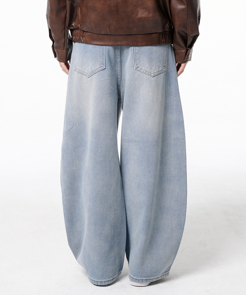 워시드 와이드 벌룬 트윌 코튼 데님 팬츠 4Color