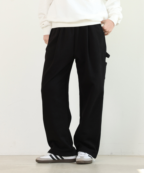 핀턱 카펜터 와이드 스웨트 팬츠 블랙 YLP-601