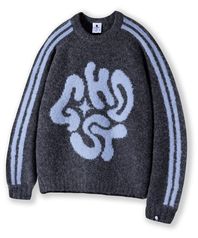 모헤어 그래픽 래글런 트랙 부클 니트 GKM-159_차콜