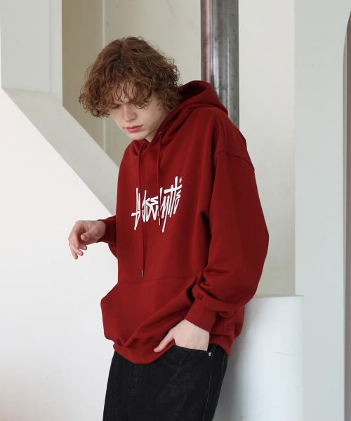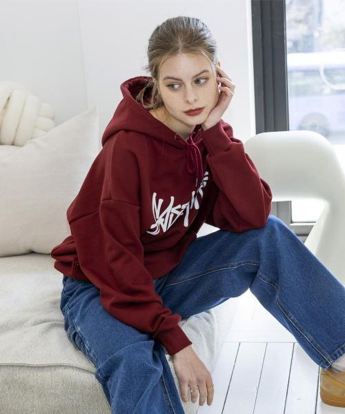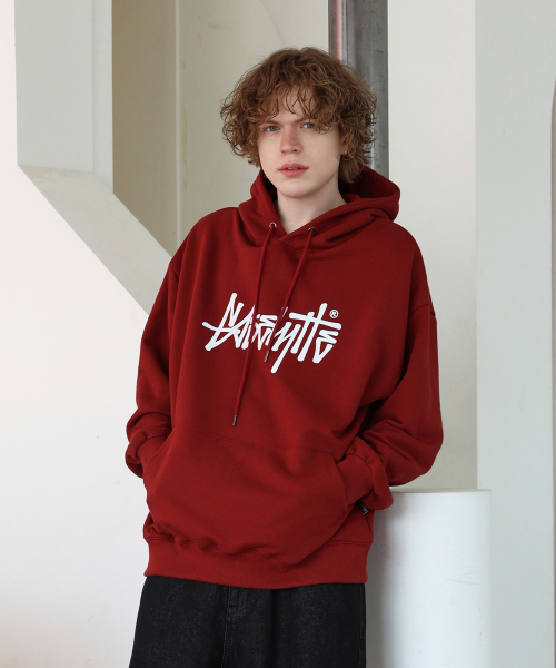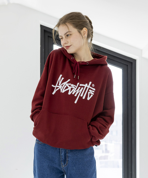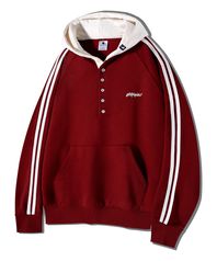 래글런 트랙 후드배색 헨리넥 후드티 GHT-483_와인