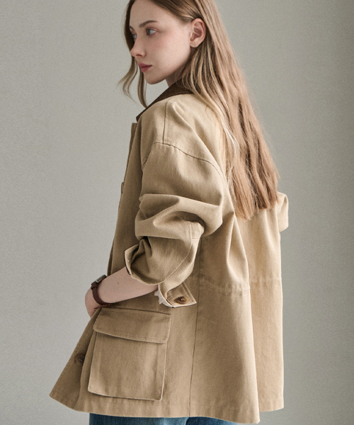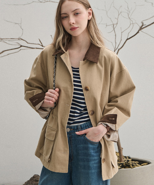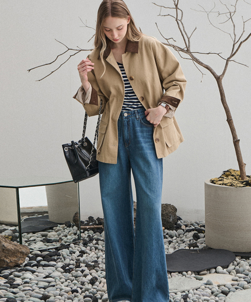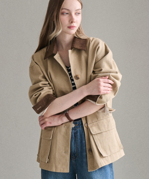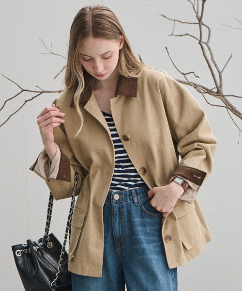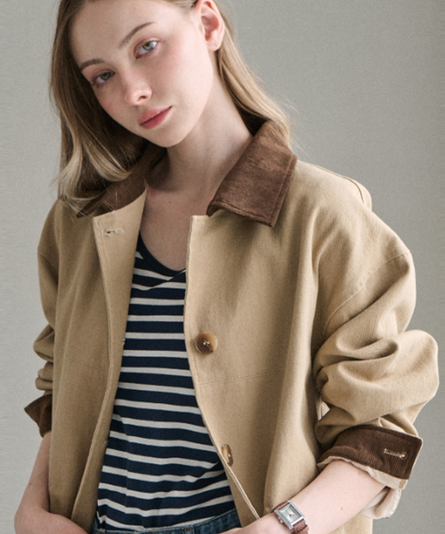 여성 스트라이프 자가드 V넥 가디건 Normal Beige