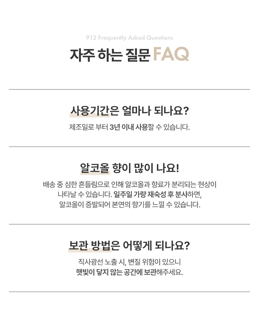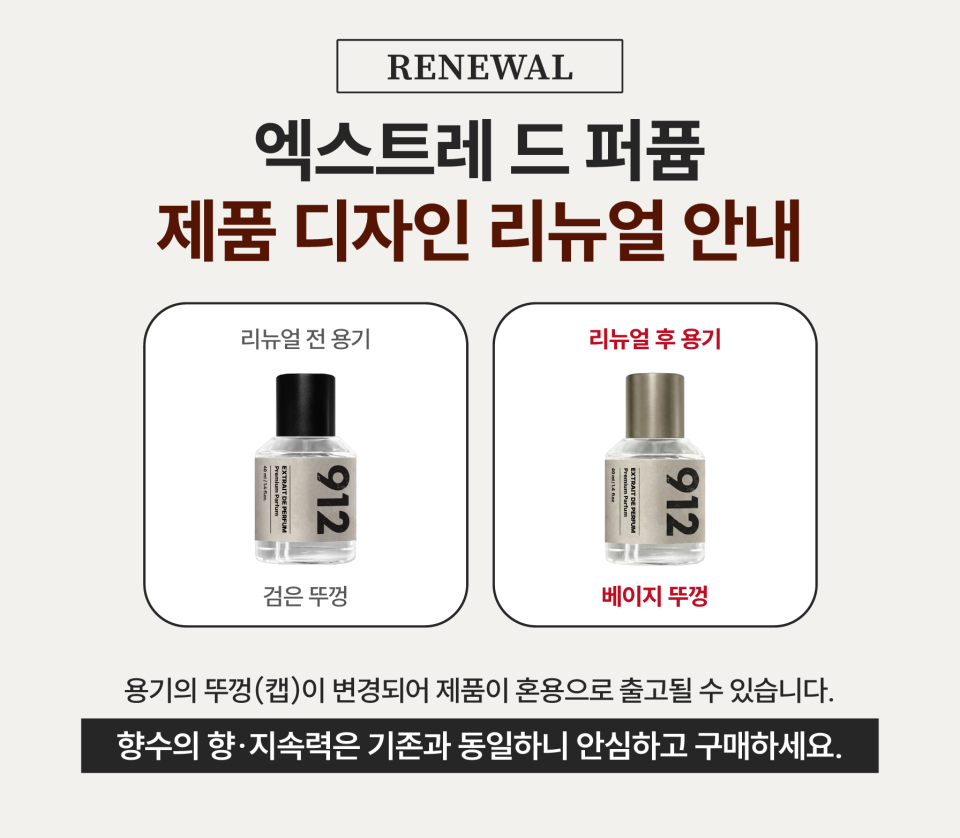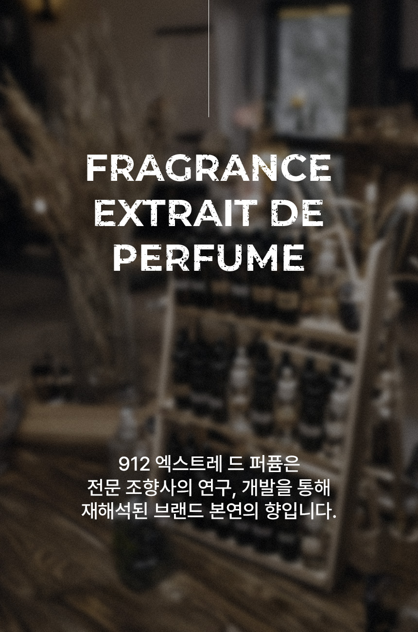 912(912)는 "좋은 향기는 좋은 기억을 만듭니다"라는 신념으로 912번의 연구 끝에 완성해 더욱 감각적이고 모던한 무드의 일상을 선물하는 라이프 스타일 프래그런스 브랜드입니다.