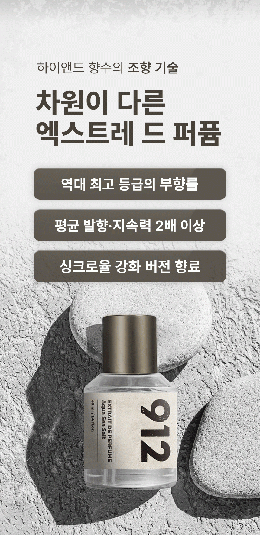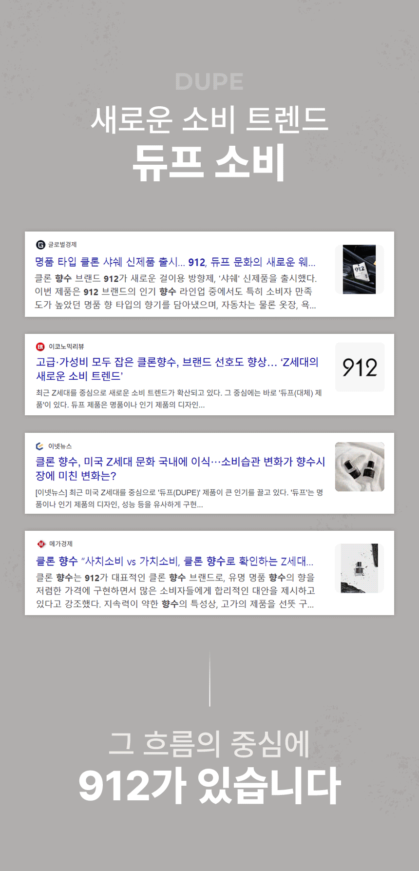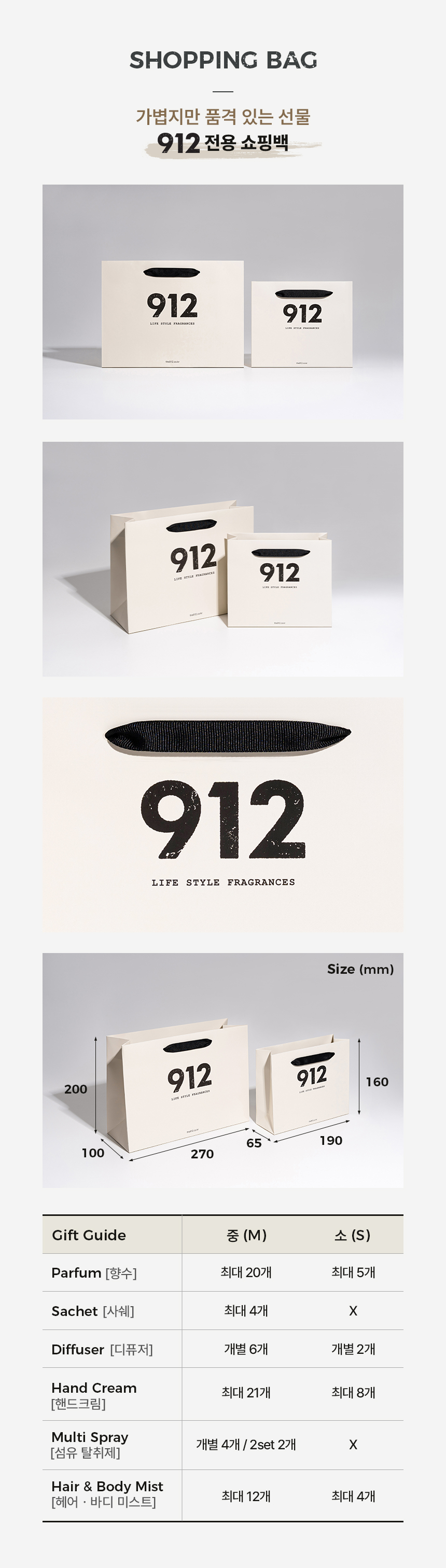912(912)는 "좋은 향기는 좋은 기억을 만듭니다"라는 신념으로 912번의 연구 끝에 완성해 더욱 감각적이고 모던한 무드의 일상을 선물하는 라이프 스타일 프래그런스 브랜드입니다.