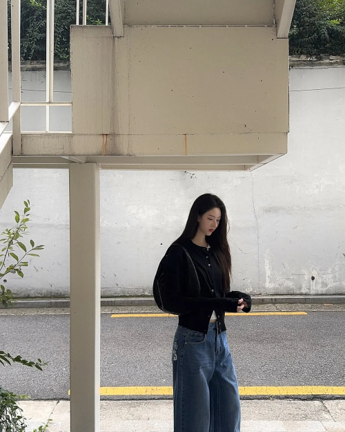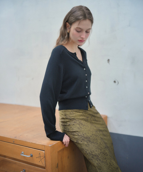 시그니처 크루넥 가디건 [BLACK] / WBE1L04507