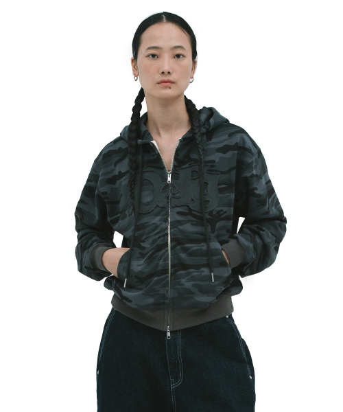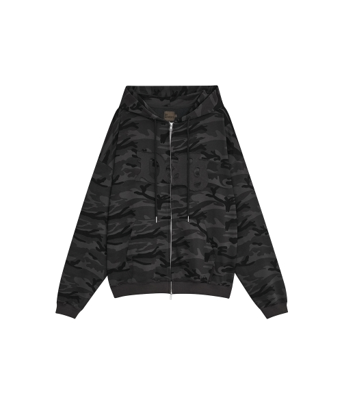 CAMO LOGO HOOD ZIP UP [BLACK]
