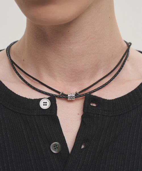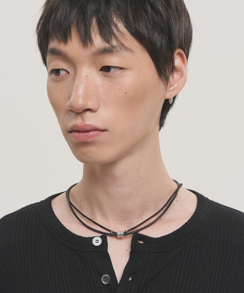 슬림 레더 체인 레이어드 네클리스 [SILVER]