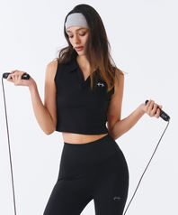 우먼스 오픈 피케 크롭 슬리브리스 (Black)