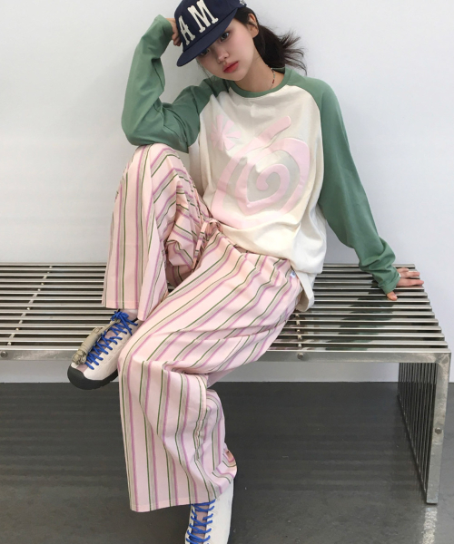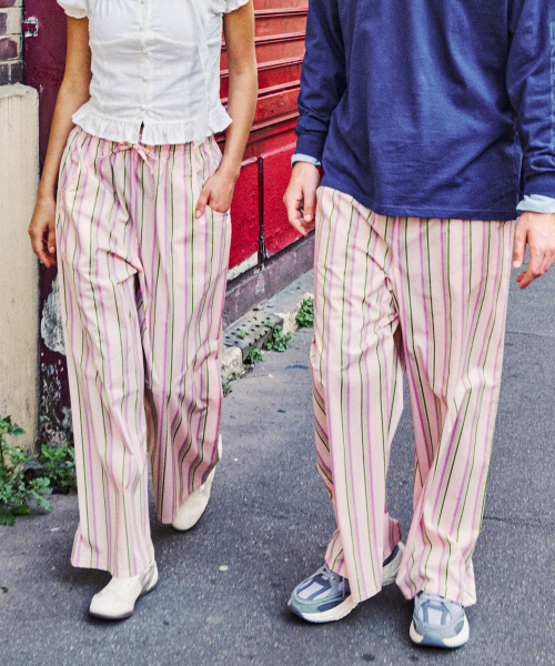 [2SET] 와이드 스트라이프 원마일 팬츠
