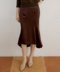 AT PANEL LONG SKIRT SATIN CHOCO BROWN