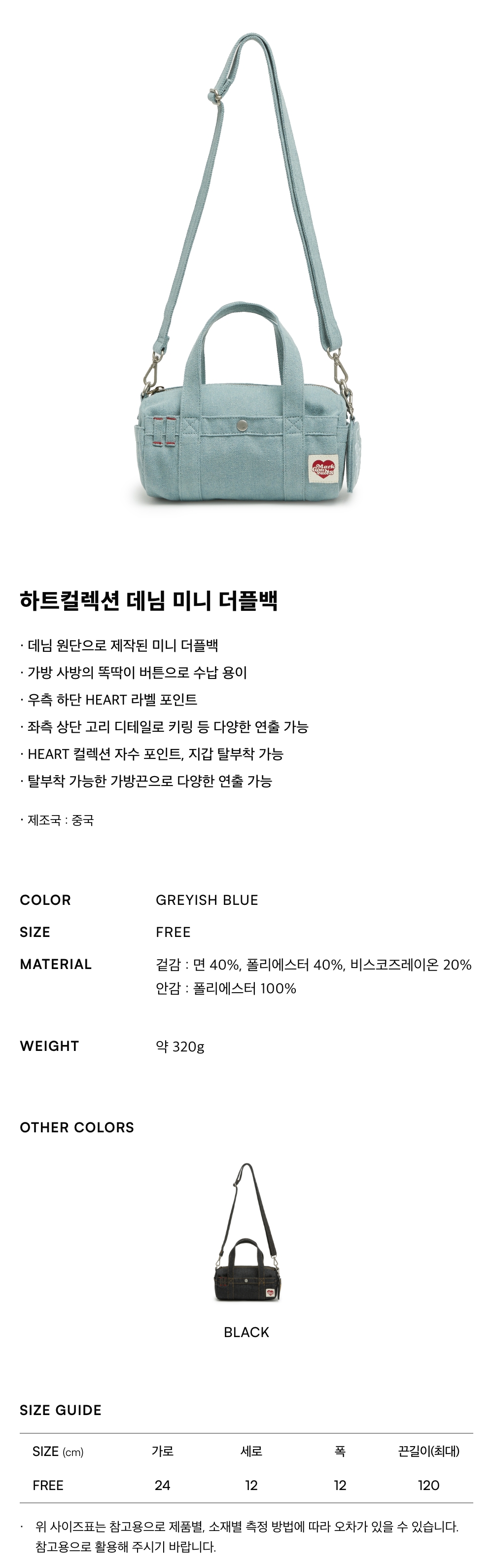 하트컬렉션 데님 미니 더플백 - GREYISH BLUE