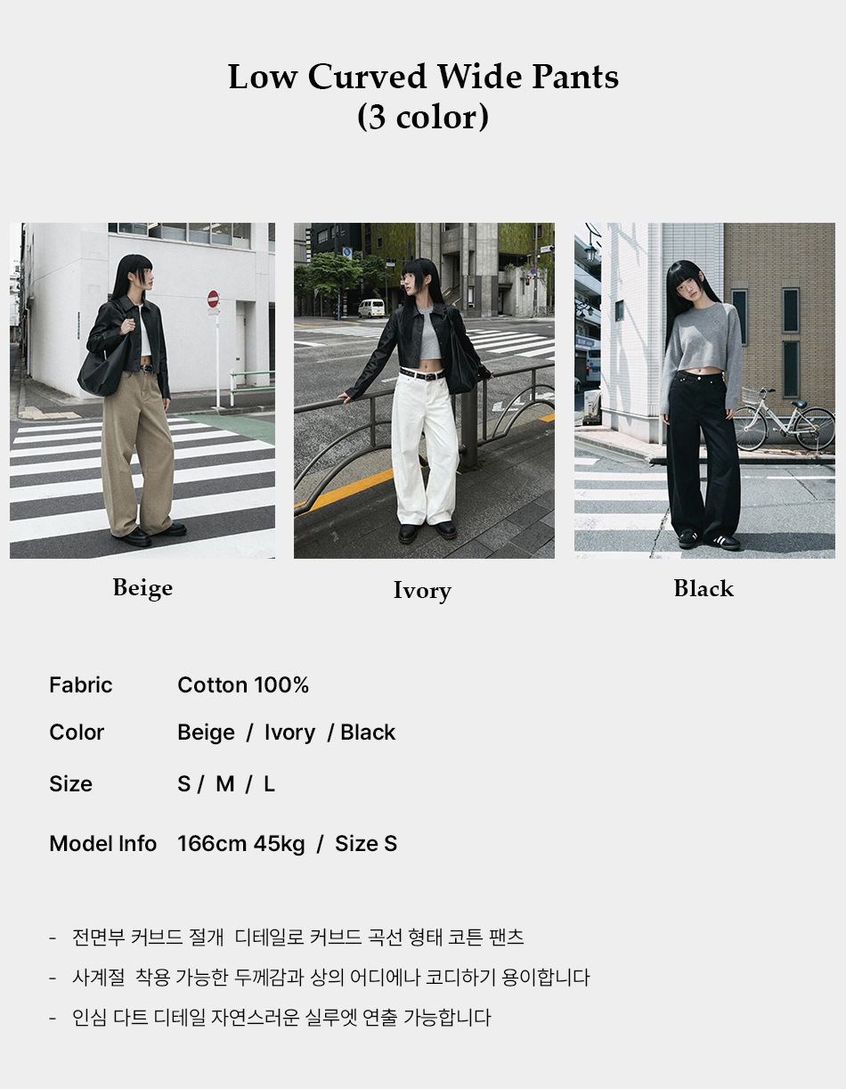 로우 커브드 와이드팬츠 (3color)