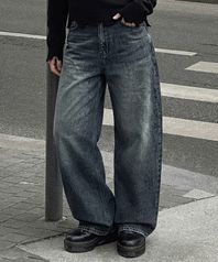 커브드 와이드 데님 팬츠 - (5컬러)