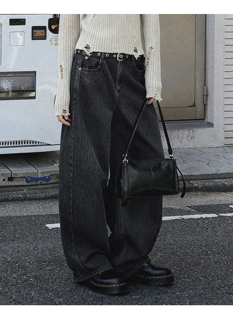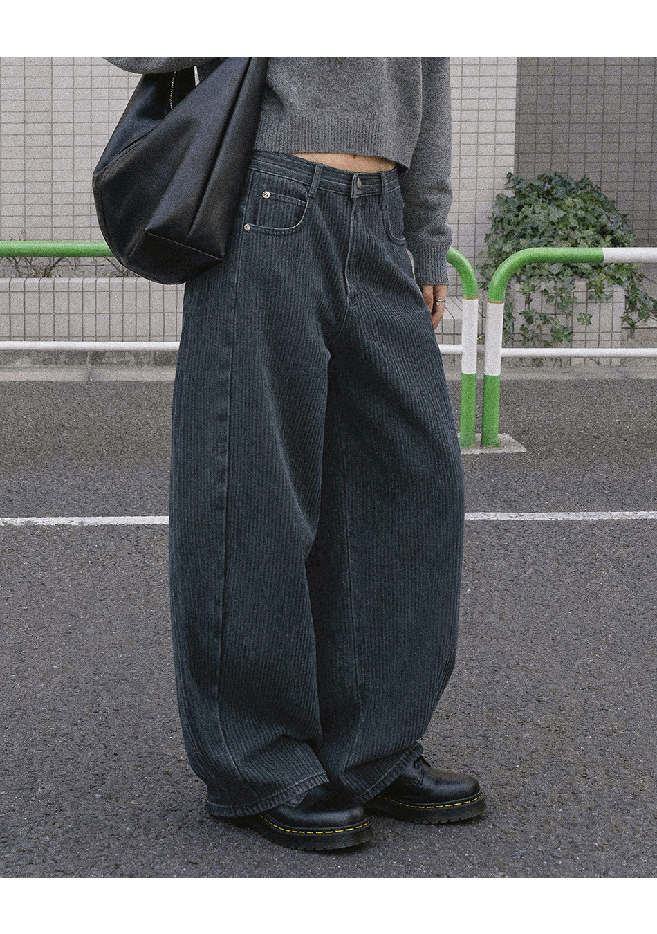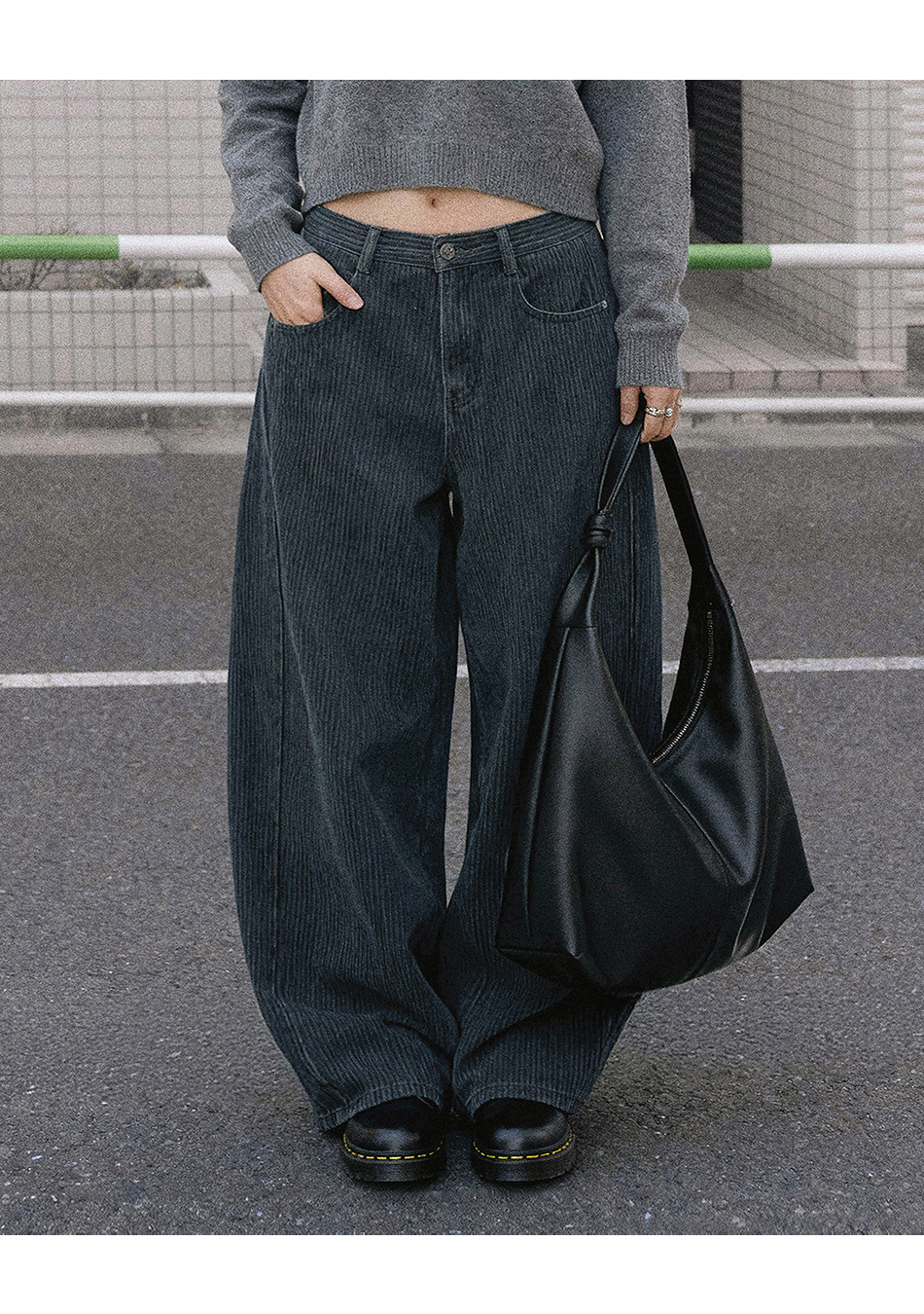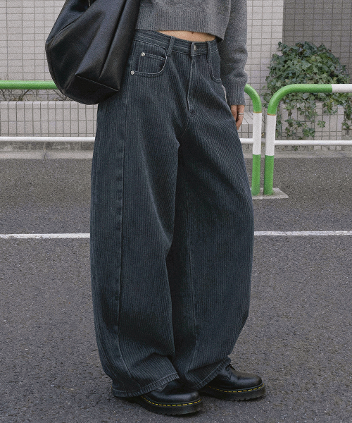 아일렛 포인트 트렁크 레이어드 새깅 와이드 히든 스트링 팬츠 [블랙]