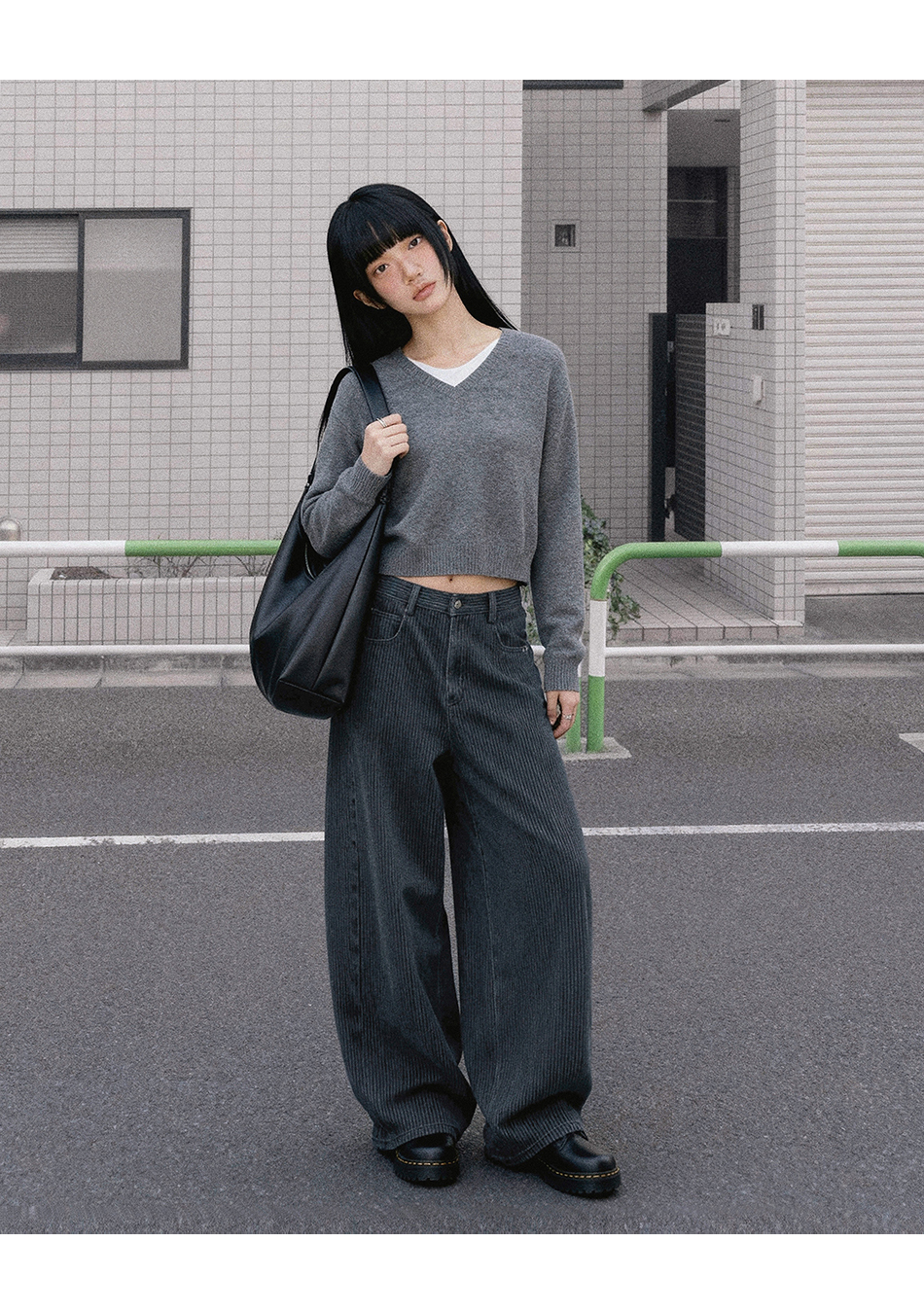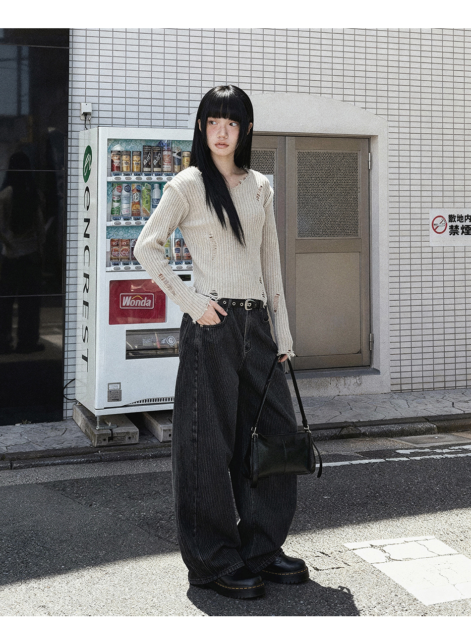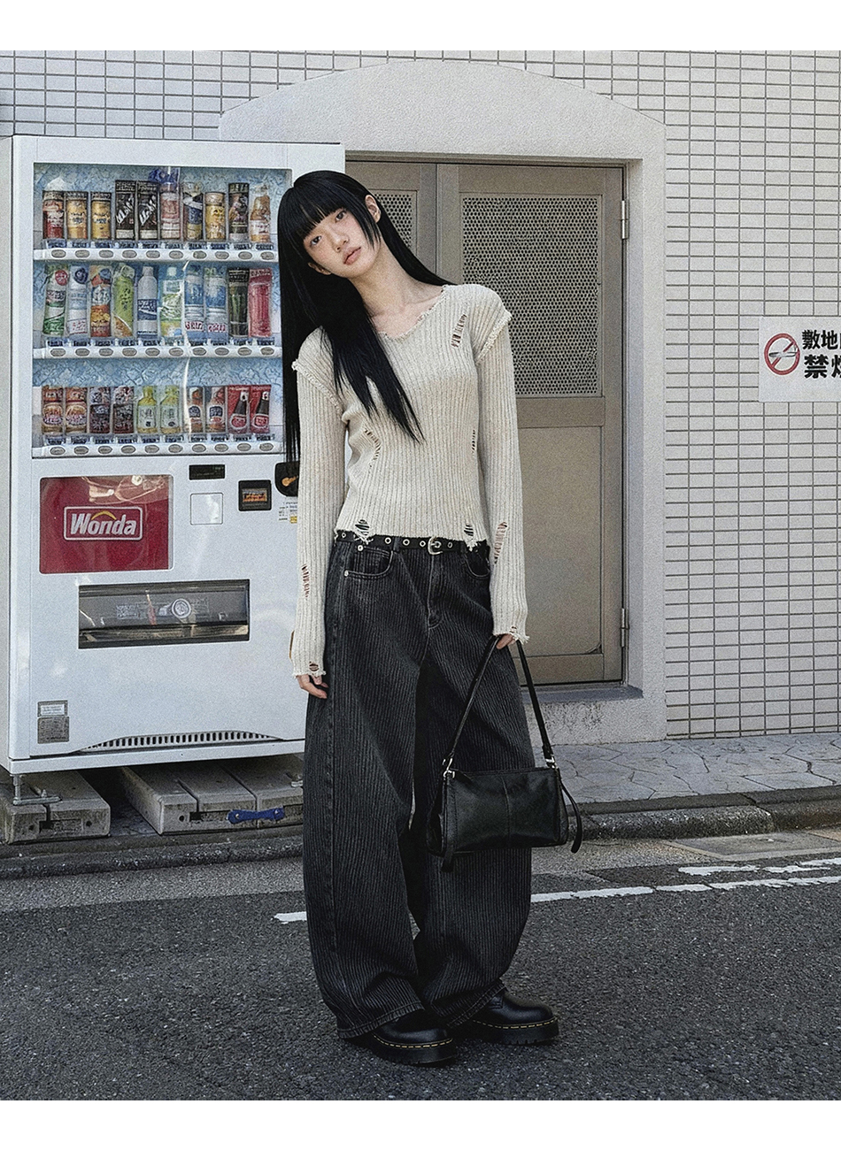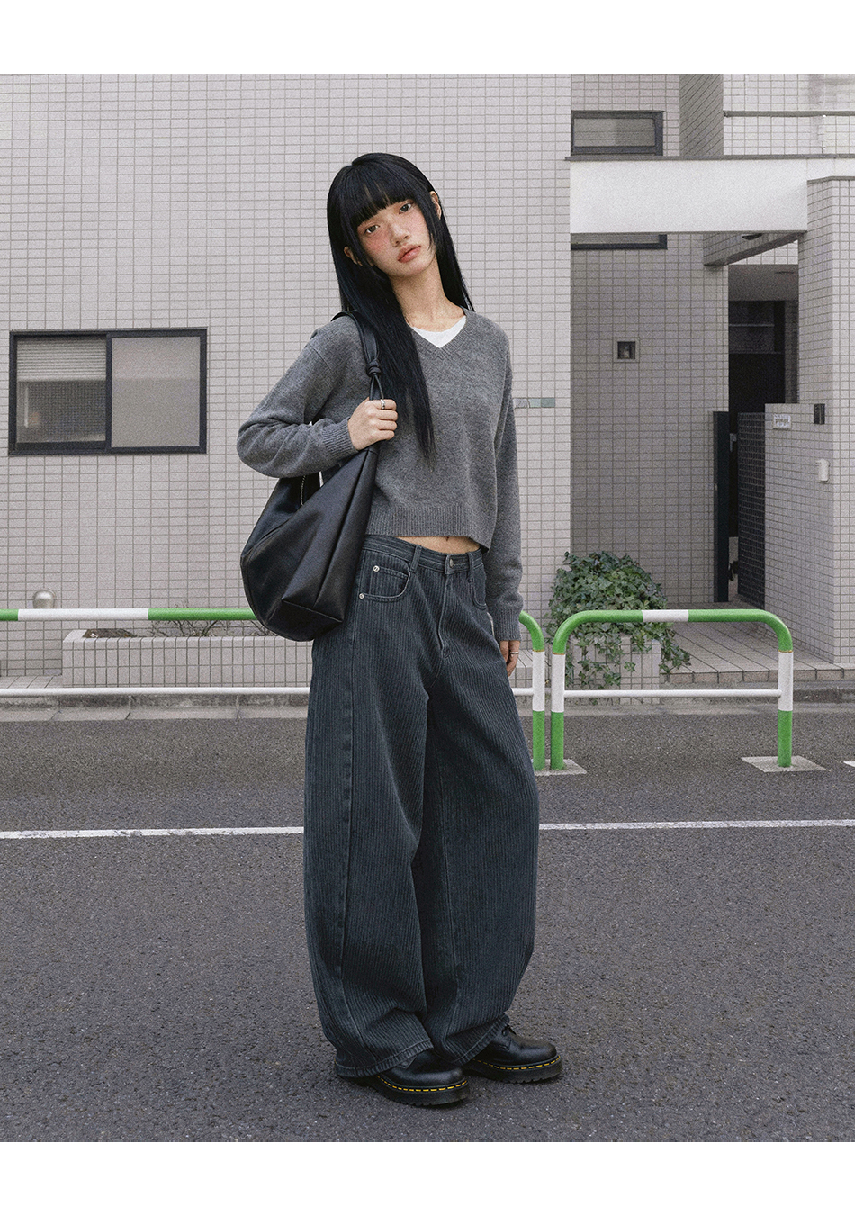 아일렛 포인트 트렁크 레이어드 새깅 와이드 히든 스트링 팬츠 [블랙]
