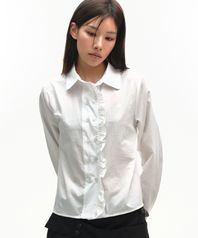 프릴 레이스 더블 버튼 클래식 베이직 긴팔 블라우스 셔츠 [화이트]