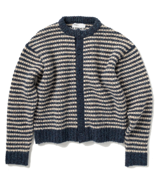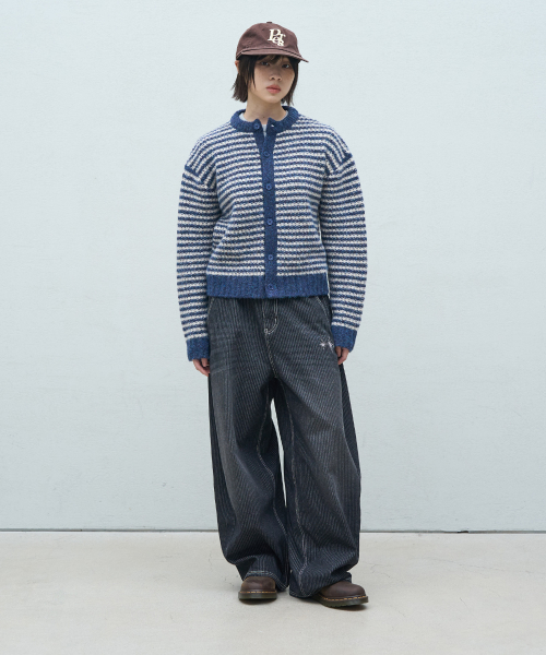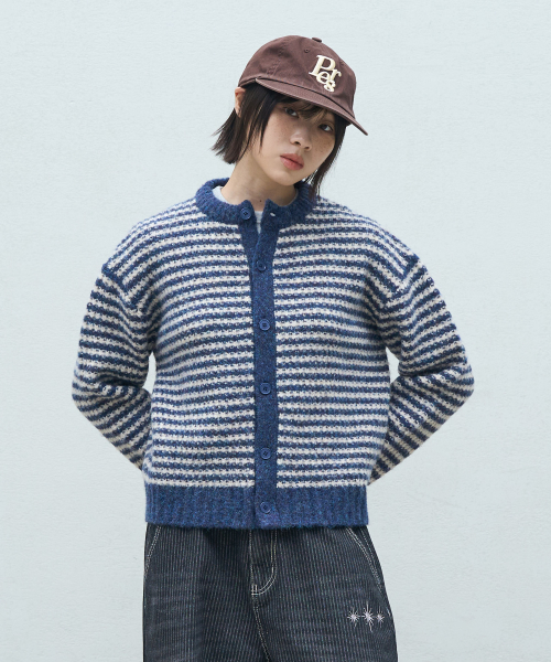 스트라이프 오버핏 크롭 가디건 - 네이비