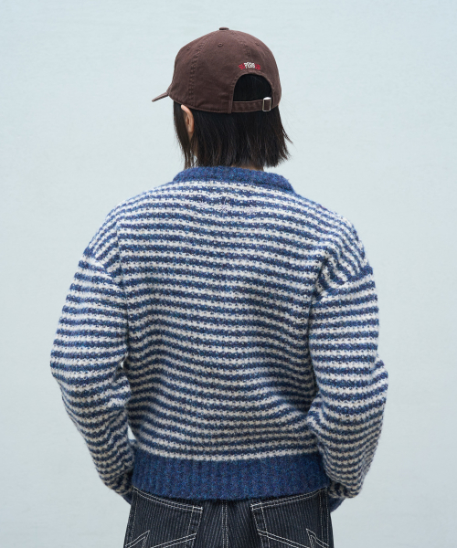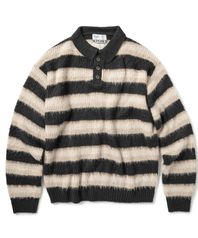 브러쉬드 스트라이프 카라 니트 - 차콜