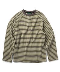스트라이프 래글런 긴팔티 - 카키