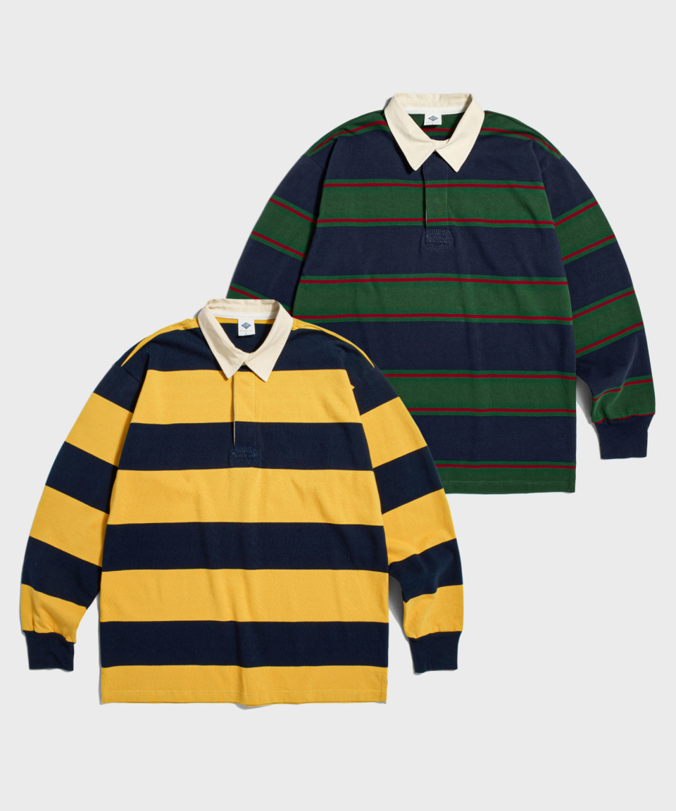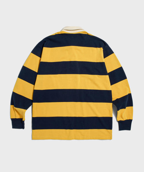 Classic Fit Striped Jersey Rugby Shirt Yellow/Navy