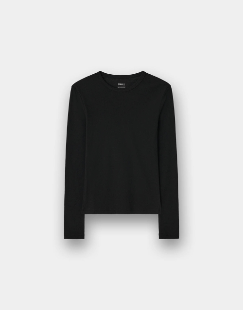 우먼즈 와플 슬림 크루 넥 긴소매 티셔츠 [블랙]