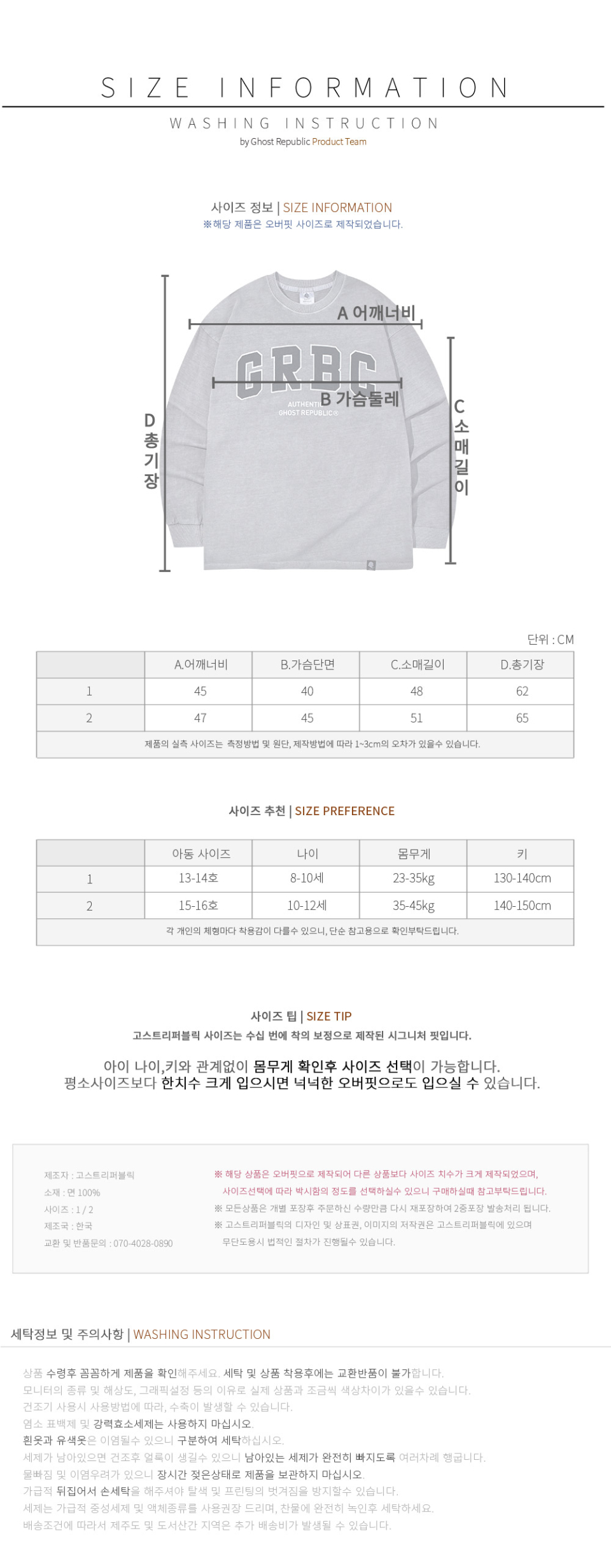 주니어 GRBC 시그니처 피그먼트 오버핏 긴팔티 JLT-J952 charcoal