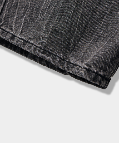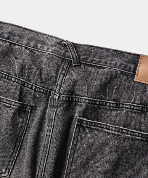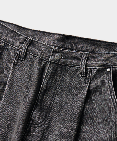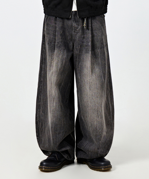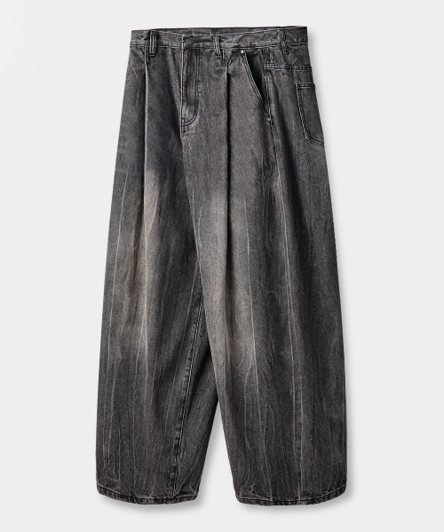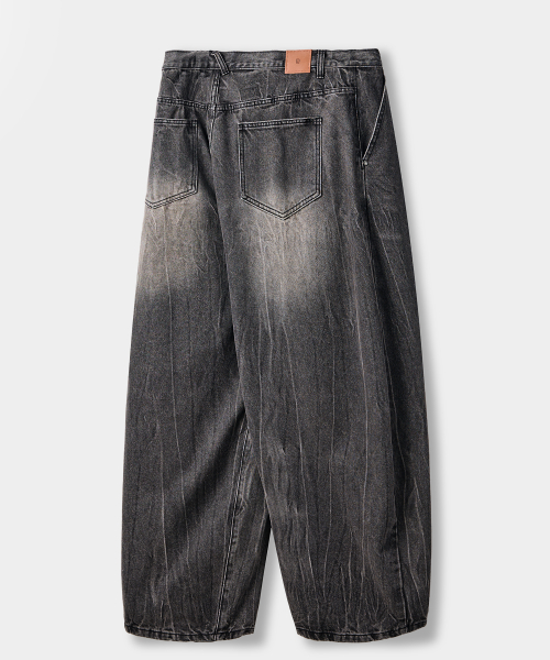 원턱 커브드 크리즈 워싱 와이드 데님 팬츠_그레이
