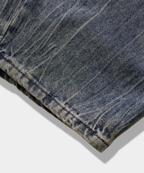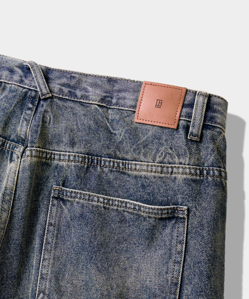 원턱 커브드 크리즈 워싱 와이드 데님 팬츠_더스트 인디고
