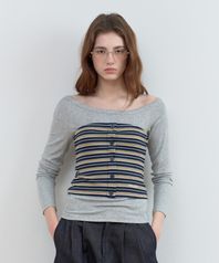 STRIPE BUTTON BUSTIER LAYERED LONG SLEEVE GY+NV