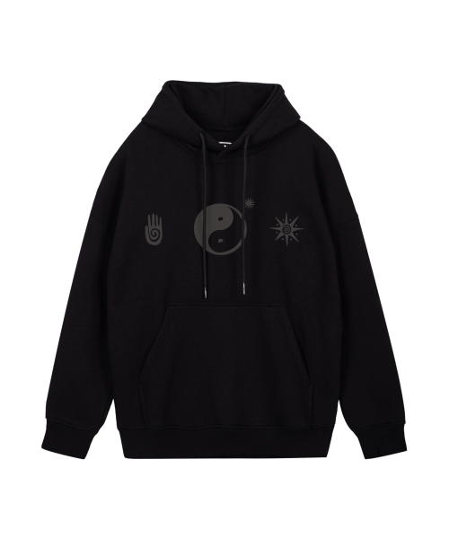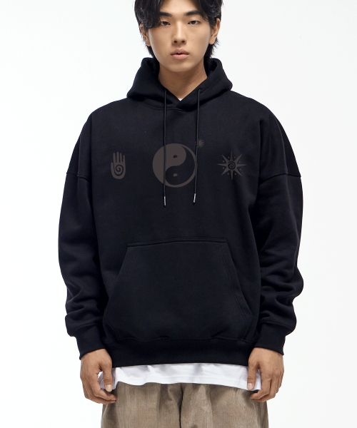 음양 그래픽 후드 블랙