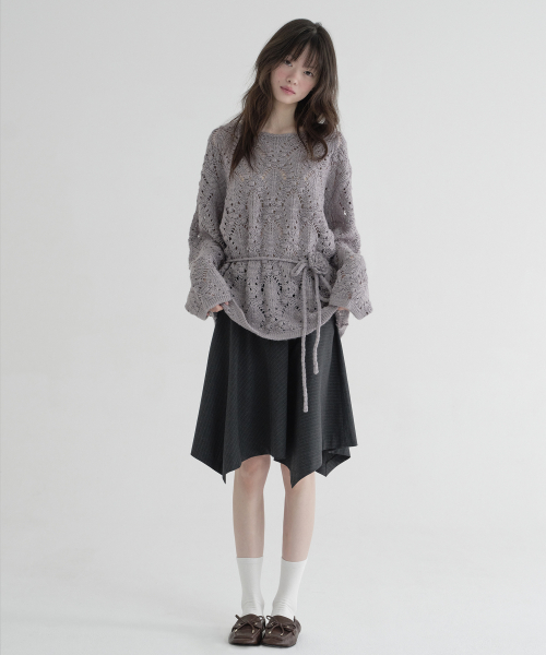 UNBALANCED PIN-STRIPE SKIRT (CHARCOAL)
