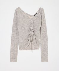 [MOUSSY] GATHER KNIT TOP LIGHT GREY