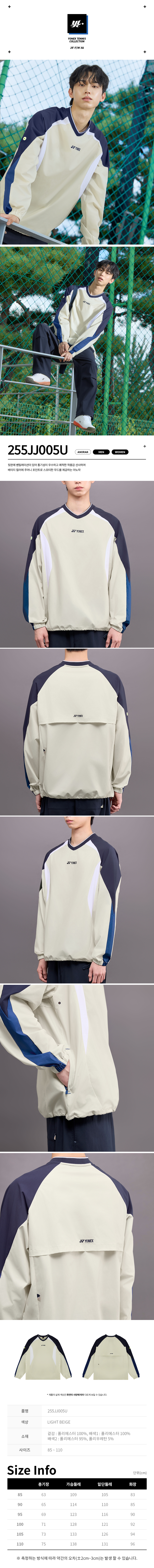255JJ005U 라이트 베이지 남녀공용 시즌 컬러 포인트 테니스 자켓