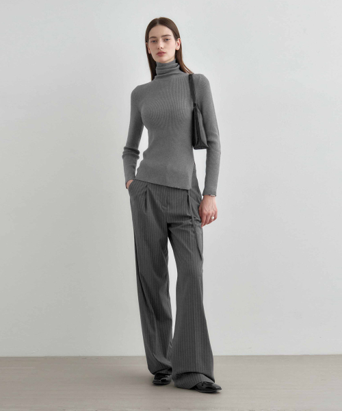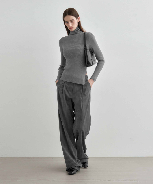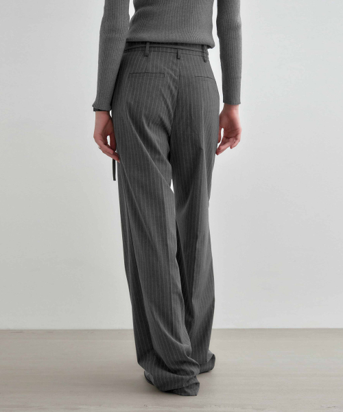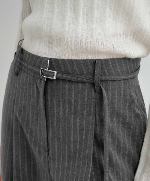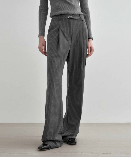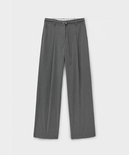 [벨트 SET] 스트라이프 원 턱 와이드 슬랙스 그레이 MDPT025STGRAY