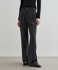 [벨트 SET] 스트라이프 원 턱 와이드 슬랙스 차콜 MDPT025STCHARCOAL