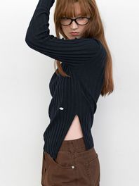 SLIT DETAIL SHEER RIBBED SLIM KNIT (T-7182)